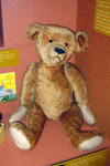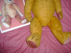 For the first ten years of researching my old bear face, I searched all over this computer, book stores and library's without any luck. January of 2010 comes and I began searching for my old bears manufacturer. By comparing my bears body style and body parts. I remember reading about early Ideal bears had the turkey leg look, like a drumstick. Weeks go by and I realize my old bear compares very close to the famous Smithsonian bear, not the face just the body style! Reading more about the earliest teddy bears were made very stiff, jointed, mohair, glass eyes etc. Why this describes my bear. With my focus on early Ideal bears. In my books I see pictures of very early Ideal bears with this little red felt tongue peeping out of this small mouth. I was puzzled. Today I can say after researching thousands of web pages, researching in many books and lets no forget the tens of thousands of early teddy bear pictures that have been posted on Ebay over the past years.. Morris and Rose michtom were innovators of their time! from the get go they were very good at changing faces and body styles on their bears. It takes a very keen eye to see the resemblance. It's like looking at both parents of a child. One can see features of the father and mother in their child. Same way with style of old teddy bears. In 2003 the U.S. printed teddy bear stamps in honor of the 100 year anniversary of the Teddy Bear and of course there is a stamp of a 1905, Ideal bear. Well I can see this stamp resembles my old bears face. But again my old bear has more details in his face because he is older. I have a very early undocumented Ideal bear! I have much more documentation to prove my story. This is turning out to be the hardest challenge of my life but I will not give up! So I am reaching out to the public. The proof I have is called, intellectual properties. No one has ever uncovered documentation as I have, only because I have the bear. Attorneys demand $250. an hour, with no end. I can't afford this. I am willing to collaborate with the right people to get this bear of mine documented and donated to the Smithsonian!