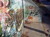 The City of Los Angeles covered the murals with a protective coat that lasts about 10 years and allows the artwork to be washed. But some of the graffiti was so prominent (see photos) that Dolin had to paint over it.