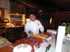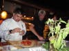Michael Gerard, the chef-owner of , lent his support for his neighboring boutiques by hosting a lounge where shoppers could idle on his atmospheric, palm-lined patio, feasting on gourmet pizzas fired up in his wood-burning oven. Gerard offered artisan beers from Eagle Rock Brewery and an assortment of red and white wines as well.