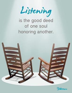 Shaboo considers good listening as a valuable skill, and that it is the good deed of one soul honoring another.
