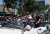 Los Angeles Mayor Antonio Villaraigosa with a bullhorn told those gathered on the sidewalks, "Happy Pride Day."