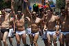 Bank of America had a 350-person strong contingent, all wearing red shirts and waving rainbow flags. Meanwhile trendy gay bar The Abbey had a fleet of Mini Cooper automobiles ride down the route.
