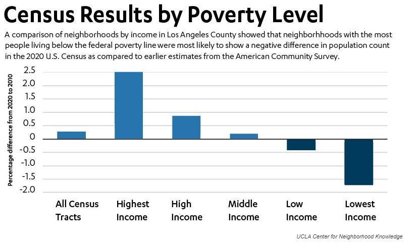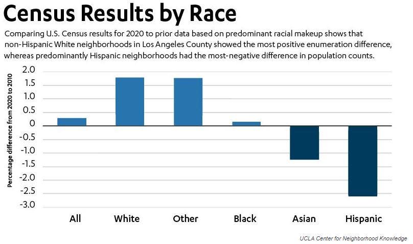 Based on comparisons between the latest census data and the most recent American Community Survey estimates, the UCLA study found that in Los Angeles County: