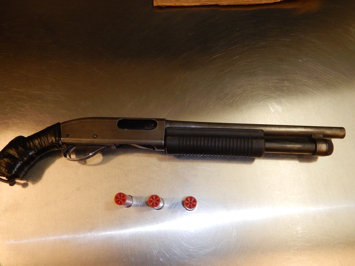 The driver, whose name was not disclosed, was arrested for having a stolen shotgun and drugs.