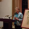 During the program, Sally Belshe described the painstaking restoration that she helped organize of the tinted images from the original leaded-glass windows, a project accomplished with the help of at least 40 club members. She noted with pride one new image that wasn’t in the original set — a woman golfer.