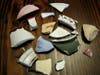 Unfortunately, there’s no abandoned work site to poke around, but there is “TEPCO Beach” at Point Isabel, where the company dumped its rejected runs into the San Francisco Bay. This section of shoreline is—and I don’t know how else to put this—a beach full of broken dishes. They cover the surface and are buried beneath, and a rhythmic clinking keeps time as small waves pass over fragments at the water’s edge.