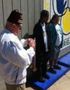 It’s not a competitive event, as all students are urged to do their best and each student wins first place. The event celebrates the motto at Jessie Baker: “Everybody shines.” Students were called one at a time to a small stage where medals were placed around their necks.