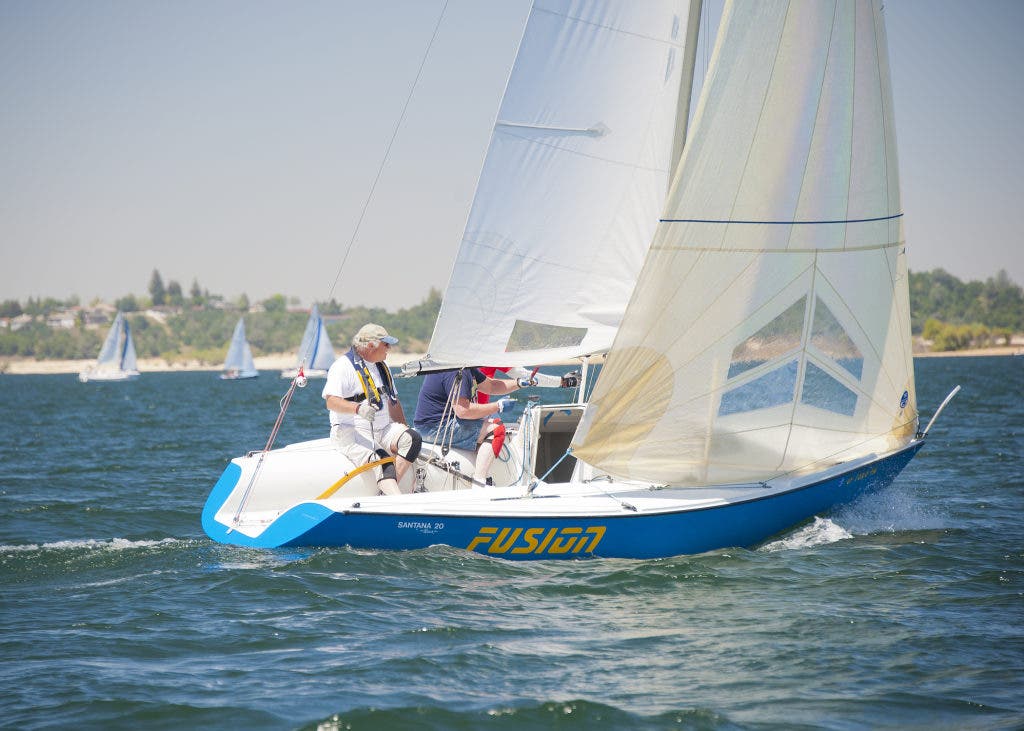 Mark Erdrich of Elk Grove undefeated in the Santana 20 class of 47th Folsom Lake race.