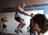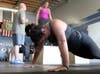 "I wanna show no matter what your age is, get out here and compete [and be more active]," said Broussard, who was sweating and winded after seven minutes of box jumps, pushups, squats and medicine ball exercises but otherwise felt "pretty good, actually."