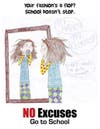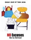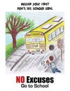 The No Excuses – Go to School attendance campaign is centered around the theme of “responsibility” to promote the importance of consistent school attendance. The program is an outreach approach to parents and community members through school newsletter articles, press releases, letters home, posters, flyers and incentive contests.