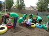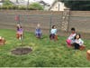 In celebration of Earth Day, parents and students at Merryhill Preschool on Harbour Point Drive in Elk Grove recently hosted a “Play Day” during which parents built a new outdoor play area using donated, natural and recycled items. The new play space includes a tree stump group time area, a sandbox created with recycled tires, a music station made with donated pots, pans and utensils, and a garden area for students to enjoy. While the play area was being built, students gardened, participated in other Earth Day activities, and learned about taking care of the environment. Merryhill Preschool teaches the importance of community and exploring nature at a young age.