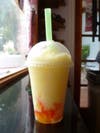 Boba is a sweet and chewy tapioca ball, which customers have the option of adding to their smoothie or tea. Rainbow jelly and mango star jelly, similar in taste to small pieces of Jell-O, are other add-ins.