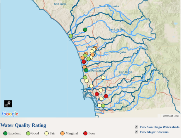 Volunteers with the group regularly take samples for testing from the watersheds. The San Luis Rey, Los Penasquitos and San Dieguito watersheds were in fair condition last year, according to the report, while the Carlsbad, San Diego, Pueblo, Sweetwater and Otay watersheds were rate "marginal" and the Tijuana River was rated "poor."