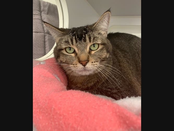 She might like living with another friendly, mellow cat and an experienced cat owner.