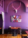 Seating capacity is approximately 40 in the main dining room, 15 in the upstairs lounge, and up to 30 in the patio lounge when it opens. Lukasiewicz describes the décor as “fantasy-dollhouse-hunting lodge.”