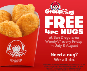 OCEANSIDE, CA — Hoping to spread some positive vibes, San Diego-area Wendy's, including two Oceanside restaurants, are bringing back the chain's popular "GroupNug" chicken-nugget giveaway.