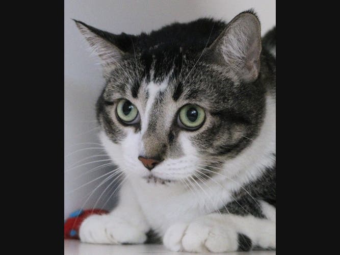 She’s shy and she will need a patient family that can help her to build her confidence. She might also benefit from having another confident cat in her home.