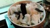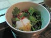 Next up were the chicken dumplings presented on a divided plate consisting of four dumplings, which are really meatballs infused with lemongrass, caramelized sugar and pork fat. They are accompanied by condiments such as cucumbers, a Sriracha sauce and scallions. Lettuce leaves are presented in a separate bowl for a wrap-up. The contrast of flavors sizzles in your mouth. Delicious.