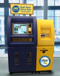 To conduct a transaction, customers will need their vehicle registration renewal notice or their most recent vehicle registration card. The touch screen machine offers instructions in English and Spanish and accepts credit card and checks.