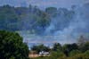 The fire initially scorched about a quarter acre of grass, and was contained within a perimeter, Humphrey said. About 70 firefighters were working to douse the flames, an effort that was continuing nearly an hour after the fire was reported, he said.