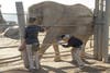 --PHOTOS: Umngani, having her milk expressed by Mindy Albright, senior keeper, San Diego Zoo Safari Park. Courtesy of San Diego Zoo Global.
