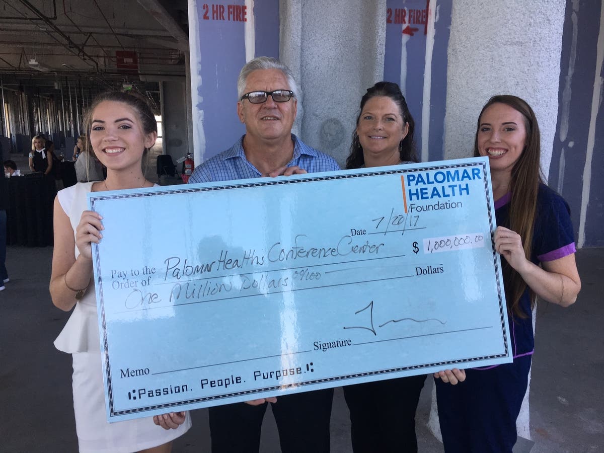 The donation will be used to help build a state-of-the-art conference center at Palomar Medical Center Escondido.