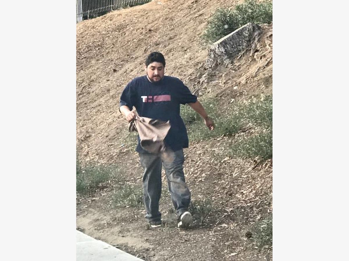 The suspect is described as a heavy-set Hispanic man in his 20s. He has bushy hair and a full beard. He was last seen wearing a dark T-shirt with "TH" imprinted on the front and dirty jeans.