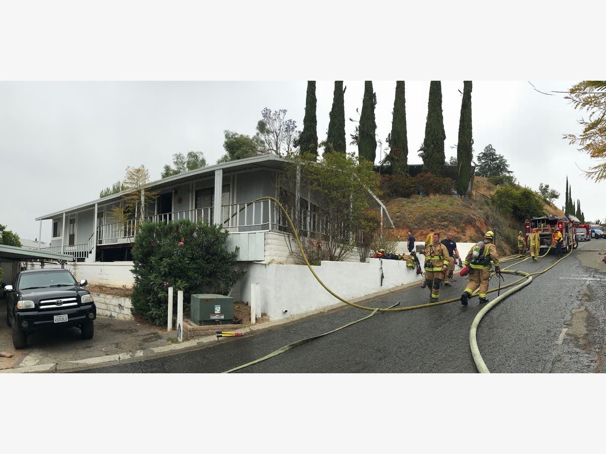 "The first arriving engine reported a light smoke coming from the mobile home and an elderly female attempting to evacuate with a walker," Bertrand said. "The crew was able to safely evacuate the resident, who suffered minor injuries and was transported to Palomar Medical Center."