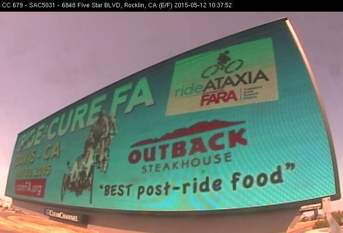 PHOTO: Billboards are up for rideATAXIA NorCal, courtesy of Clear Channel Outdoor, near the Galleria at Roseville and the corner of Highway 65 & Galleria Blvd. Image via Ride Ataxia on Facebook.