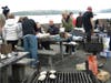 Four minutes over direct heat on the grill. Technically, that’s all there is to it but there is so much more to the experience. Hog Island has about 20 tables and they are packed with fun, friendly people drinking wine and beer and sharing food and stories with new friends on their tables. Many groups came totally prepared with other tasty goodies to grill and others, like us, were all about the oysters.