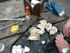 After passing several oyster farms we just had to stop and check one out. Let the party begin! Again, we had no idea what we were getting into and were unprepared, but the good folks at the Hog Island Oyster farm were happy to help at every turn. We were set up with a bag of oysters, a knife and found a picnic table and grill. As the fire started, I shucked the oysters and we chose some different sauces to doctor up our little friends before grilling.