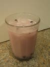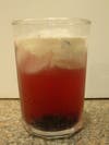 Fill glass with ice. Pour in juice, then sparkling water and top with cream. Add dried blueberries and stir to mix.