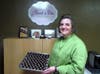 There is a choice of milk, semi-sweet and dark chocolate. Sugar free, low-sugar and vegan are all available in different flavors. A truly “to die for” is the Baby Blue Chocolate Silk – dark chocolate, chopped pecans and a hint of gorgonzola cheese. This is a must to serve with a fine red wine. Becki has partnered with the Bella Vista High School glass art class making glass trays from wine bottles and then she fills them with her wonderful treats.