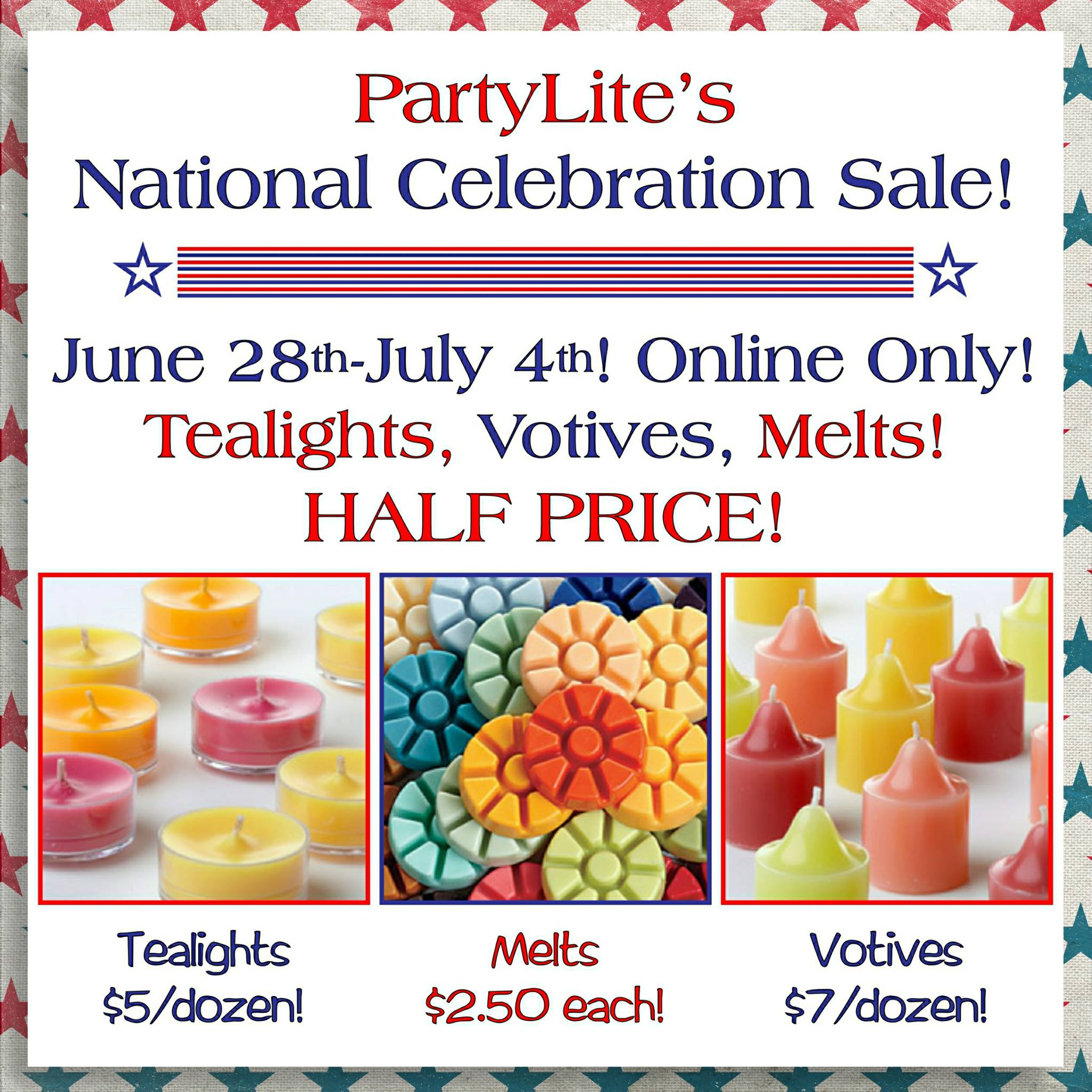 Tealights, Votives & Scent Plus Melts are all HALF OFF for online purchase@ www.partylite.biz/mhass