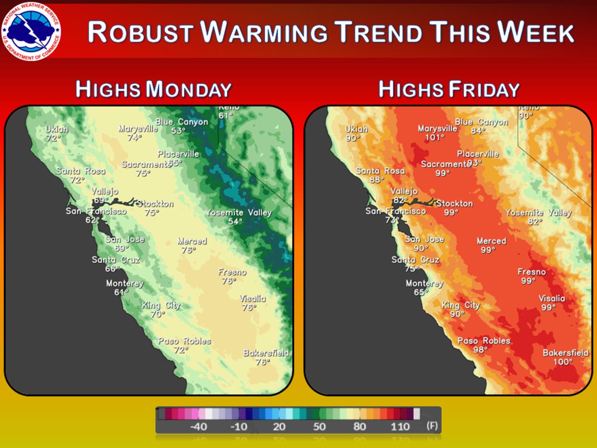 FOSTER CITY, CA – As you plan your week around the Bay Area, get ready for some warmer weather. After a weekend of temperatures below seasonal average – and even some rain in places – forecasters say that a "robust warming trend" is en route.