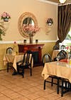 For dinner, customers often choose the four-course menu. With this prix fixe meal comes the choice of three entrees, along with soup, salad and dessert. Soufflés are offered on Friday and Saturday nights, including Chocolate, Grand Marnier and sometimes Swiss-German Apple flavors. The restaurant's signature dessert is the Swiss bread pudding.