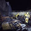 ORANGE COUNTY, CA — Orange County Fire Authority responded to a fully involved structure fire overnight in Yorba Linda on the right side of an industrial building. The fireworks apparently ignited multiple pallets creating an explosive fire, according to OCFA photos.