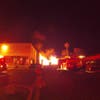 Firefighters worked to lay down the fire, and over the course of several hours, the fire was placed under control without extending into two commercial structures.