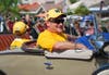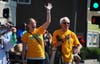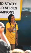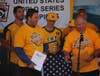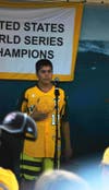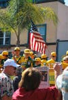 After the parade, the team crossed Pacific Coast Highway along with the crowd. They got up on the "Surf City Stage" and were honored by local politicians including Huntington Beach Mayor Joe Carchio and Rep. Dana Rorahbacher.