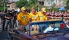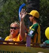 The young men, their families, coaches, umpires and the Ocean View High School marching band cruised down Main Street as people whooped, applauded and tossed confetti.