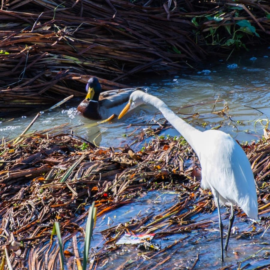 Patch reader Raj Gopinath shared this photo of an egret, it appears to be a Great White Egret, hunting in Alameda Creek. A mallard duck nearby seems to be supervising. From our own backyards, to nearby creeks and the Bay, bird watching is an easily attainable pastime here in the Bay Area.