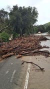 California Department of Transportation crews are at the scene, assessing the damage and clearing trees, rocks and mud from the roadway, police said.