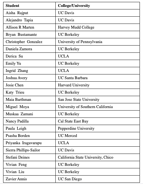 Nearly 200 scholarship applications were received from students residing in the East Bay. The following scholarship recipients were selected based on their academic achievements, extracurricular activities, financial need and community involvement: