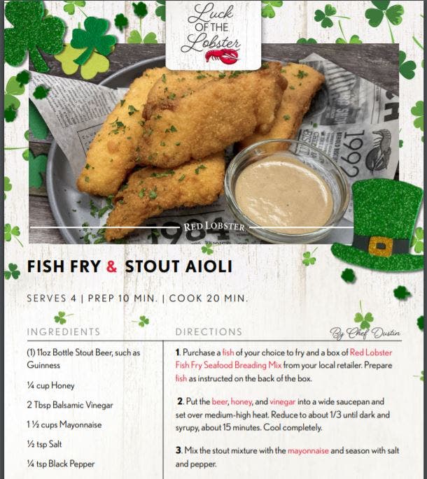 And using Red Lobster's Fish Fry Mix, you can celebrate with perfectly breaded "Fish Fry with Stout Aioli."