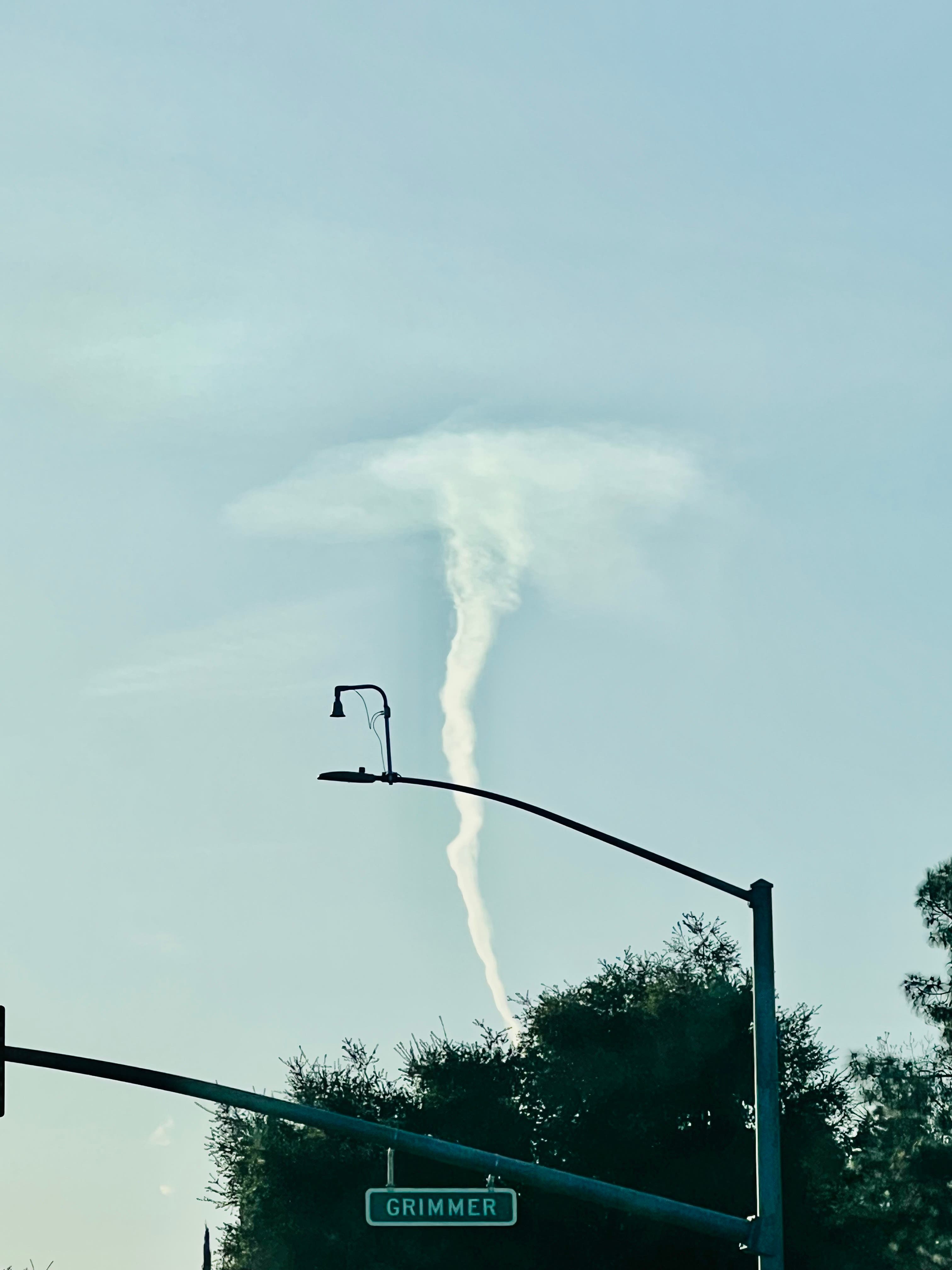 FREMONT, CA — It has been an unusual weather week in Fremont including sunshine, a thunderstorm and a beautiful rainbow. Friday morning brought this anomaly: a tornado-like cloud. Monica Karankar photographed it while driving to work. As you can see from the street sign she was at Grimmer Boulevard.