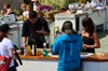 Throughout the demonstration, Sosa and Franklin stopped to circle the room to offer eager audience members bits and pieces of the dish. Before thanking the audience for their time, Sosa made a final trip to the bleachers. This time, he poured the purΓ©ed gazpacho directly from a blender into a male audience member's mouth.Β