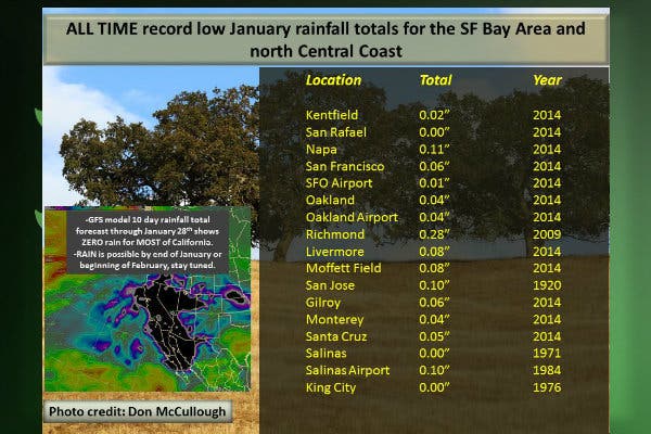 Here’s a list of record lowest January rainfall totals for area climate sites, many were set just last year.