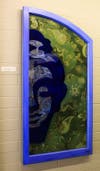Painted on the glass of a purple, arched, vintage window frame, a Buddha face meditates in paisley blues, purples and greens. The window frame hangs from a brick wall inside the Gilroy Arts Alliance Interim Center for the Arts and is one of a 30-or-so-piece set that makes up the venueโs April 1 to May 15 exhibition called, โFinestra Rustica!โ