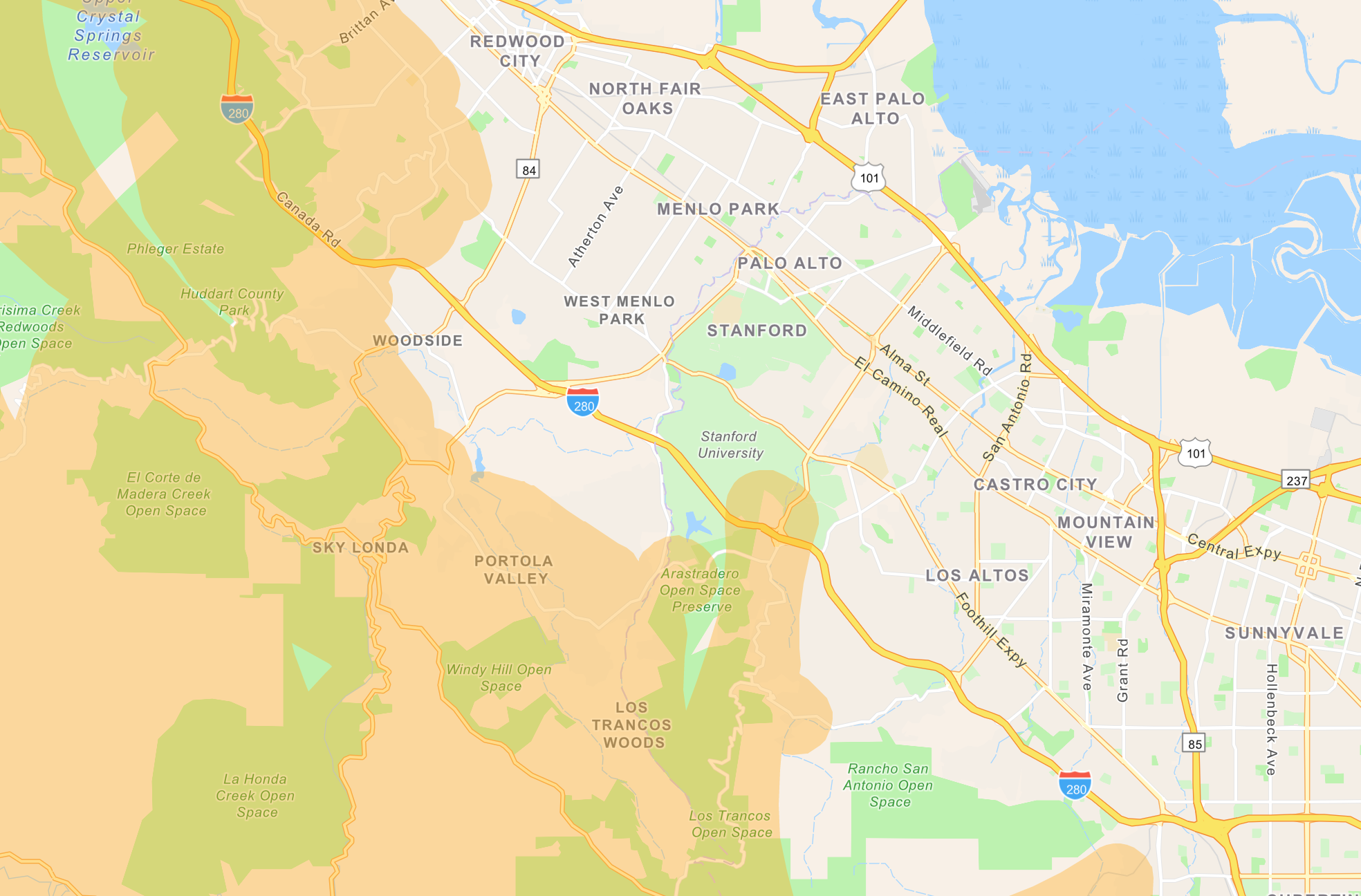 Here's a map of the planned shutoff area around Palo Alto (the most accurate information can be found using PG&E's address lookup):
