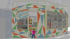 When the space is completed, its multifaceted exterior will reflect the creative nature of the activities taking place inside. The interior will feature workspace for multiple projects to take place simultaneously, space to hold a wide variety of tools and materials, display cases and shelves to allow children to showoff their creations, and a large video display to show past projects and creations as well as aid Educators in leading large group projects and demonstrations.